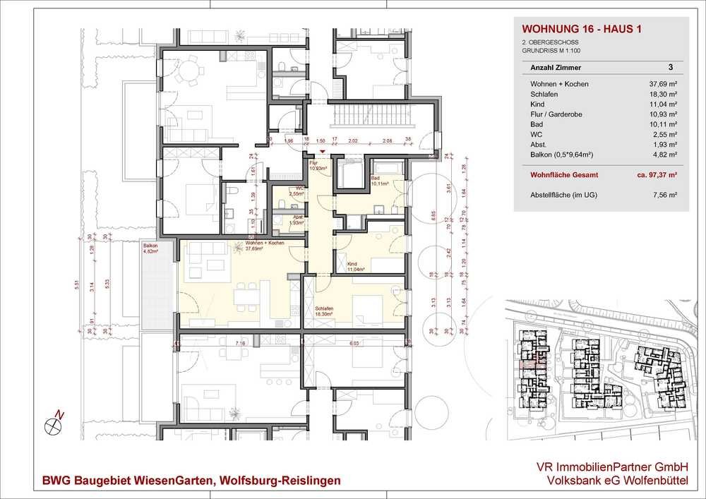 In exponierter Lage zur Wolfsburger Innenstadt sind im Baugebiet „Wiesengarten“ auf einem 6.465 m² großen Eigentumsgrundstück drei ausdrucksstarke Baukörper - bestehend aus jeweils drei Vollgeschossen und einem Staffelgeschoss - entstanden.
