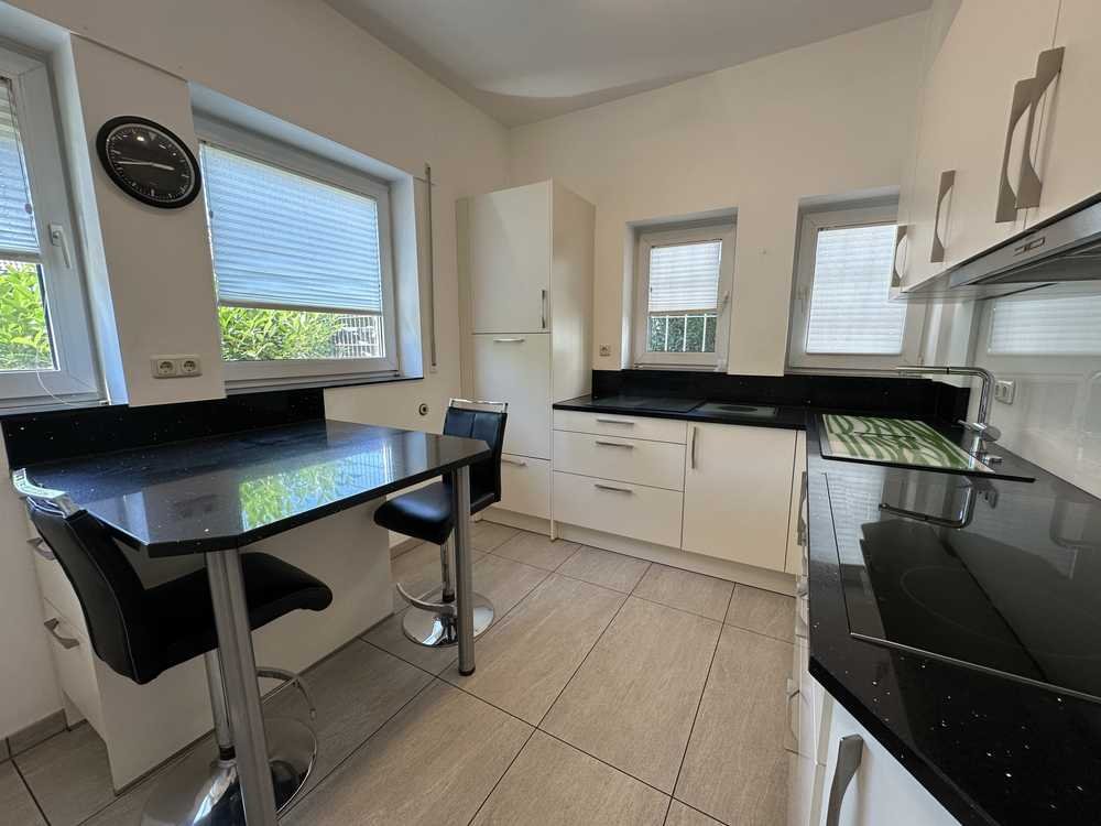 Mittelpunkt der Wohnung ist der rd. 35 m² großer Wohn-/Essbereich - durch eine Schiebetür miteinander verbunden - mit zwei direkten Terrassenausgängen. Ein weiteres Highlight stellt die in 2019 neu gestaltete Küche mit wertvollen Einbauten und kleiner Sitzgelegenheit dar. Im rückwärtigen Bereich sind das Schlafzimmer sowie das Kinder-/Gästezimmer mit eigenem Duschbad angesiedelt. Auch das 2016 komplett sanierte Tageslichtbad mit Wanne und separater Dusche befindet sich hier.