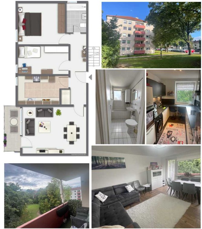 Die derzeit vermietete 3-Zimmer-Eigentumswohnung befindet sich in ruhiger Lage und bietet auf dem Balkon einen wunderschönen Blick ins Grüne. Die Wohnanlage wurde teilweise modernisiert. Die Fenster sind Kunststofffenster mit Isolierverglasung. Der Elektrosicherungskasten und die Elektroinstallation in der Küche wurden ebenso erneuert wie auch die Wohnungseingangstüre. Die Bodenbeläge sind in Holzoptik, modern und wohnlich. Die vorhandene EBK ist im Kaufpreis enthalten. Derzeit ist die Wohnung vermietet (Rendite ca. 4,06%).