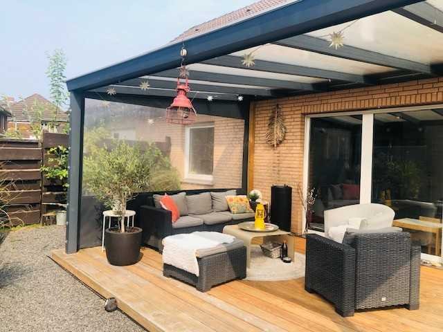 Zu den weiteren Annehmlichkeiten gehören Fußbodenheizung in der unteren Etage, zwei Badezimmer, die den Wohnkomfort erhöhen und ein Gäste-WC für Besucher. Besondere Highlights sind der tolle Gaskamin und die überdachte Terrasse.
