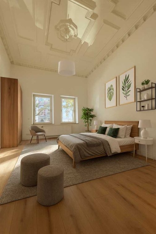 Die Fotos sind vor Einzug der aktuellen Mieter entstanden. Das Schlafzimmer wurde digital möbiliert.