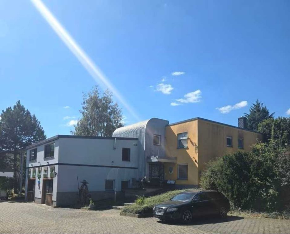 Willkommen in diesem einzigartigen, freistehenden Mehrfamilienhaus, das Ihnen sowohl Wohnraum als auch Gewerbefläche bietet.
