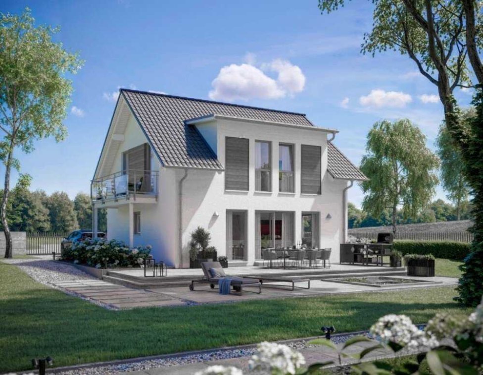 Das projektiert Fertighaus EVOLUTION 124 von Bien-Zenker vereint modernes Design mit individueller Gestaltungsfreiheit. Mit einer großzügigen Wohnfläche von 124 m² und einer intelligenten Raumaufteilung bietet dieses Haus Platz für Familien und Paare, die Wert auf eine harmonische Verbindung von Funktionalität und Ästhetik legen. Die markanten großen Fensterflächen sorgen für lichtdurchflutete Räume und schaffen eine einladende Atmosphäre. Das Satteldach, wahlweise mit 25° oder 38° Dachneigung, verleiht dem Haus Charakter und ermöglicht eine interessante Fassadengestaltung. Hier können Sie zwischen modernen und klassischen Elementen wählen, wodurch Ihr EVOLUTION 124 zum ganz persönlichen Rückzugsort wird.