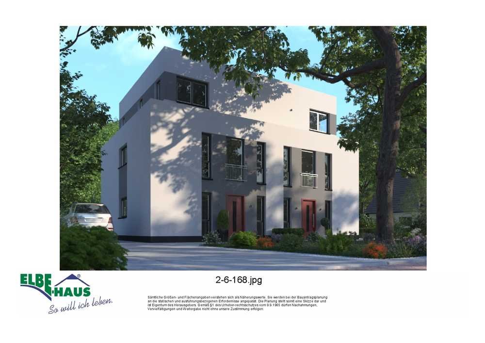Dieses innovative Elbe-Haus® wird in massiver Bauweise von qualifiziertem Fachpersonal errichtet. Wir planen und projektieren nach Ihren Vorstellungen und Wünschen und somit ist wirklich jedes Haus einzigartig. Beachten Sie bitte, dass das abgebildete Haus lediglich ein Bebauungsbeispiel ist. Das Grundstück kann unter Berücksichtigung der örtlichen Bauvorschriften mit Ihrem Wunschhaus von Elbe-Haus® errichtet werden.