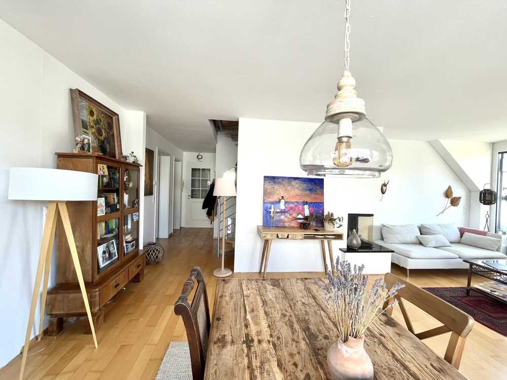 Mit rund 106 Quadratmetern Grundfläche und einer reinen Wohnfläche von ca. 88,87 qm, die sich auf 3 1/2 Zimmer erstreckt, eignet sich dieses Zuhause ideal für Paare, Singles oder eine kleine Familie, die Wert auf Stil, Lage und Substanz legt. Da es sich um eine Maisonette-Wohnung handelt, verteilen sich die Zimmer auf 2 Etagen, was der Wohngemeinschaft Rückzugsmöglichkeiten und eine Nutzung der Immobilie für Homeoffice-Zwecke bietet.