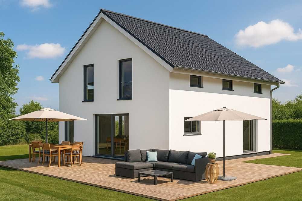 Die Architektur des EVOLUTION 162 zeichnet sich durch individuelle Gestaltungsmöglichkeiten aus. Mit unterschiedlichen Dachformen und einer Vielzahl von ergänzenden Architektur-Bauteilen haben Sie die Freiheit, Ihr Traumhaus nach Ihren Vorstellungen zu gestalten. Ob Sie nun eine moderne oder klassische Fassade bevorzugen - Bien-Zenker bietet Ihnen alle Werkzeuge, um Ihr persönliches Wohlfühl-Haus zu kreieren. Zudem können Sie auf einem großzügigen Grundstück von 657 m² Ihre Gartenträume verwirklichen und eine Terrasse gestalten, die zum Entspannen und Verweilen einlädt.