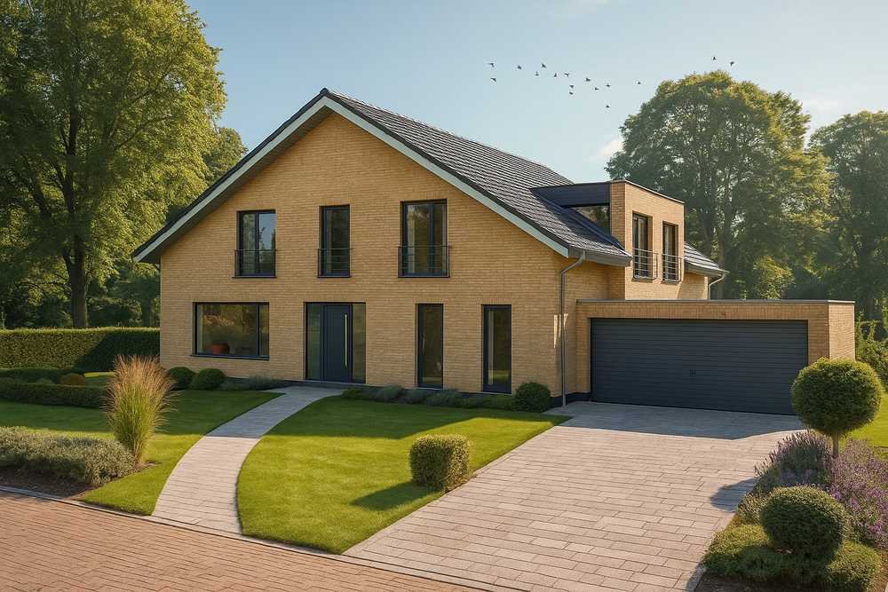 Das Bien-Zenker Haus Evolution 136 begeistert durch seine beeindruckende Architektur und die Möglichkeit, ganz nach Ihren persönlichen Wünschen und Vorstellungen gestaltet zu werden. Mit einer großzügigen Wohnfläche von 136 m² auf einem weitläufigen Grundstück von 1205 m² bietet dieses Projekt nicht nur Platz, sondern auch viel Raum für Ihre individuellen Ideen. Die durchdachte Raumaufteilung mit insgesamt sechs Zimmern, darunter drei Schlafzimmer und zwei Badezimmer, sorgt dafür, dass sowohl Familien als auch Paare sich hier wohlfühlen. Die beiden Satteldach-Varianten verleihen dem Haus eine moderne Note und schaffen ein einladendes Ambiente, während die intelligente Anordnung der Räume im Erdgeschoss und Obergeschoss das Arbeiten und Wohnen harmonisch vereint. Ein besonderes Highlight ist die elegante, geradläufige Treppe, die die Diele zu einem echten Blickfang werden lässt und ein Gefühl von Weite und Eleganz vermittelt.