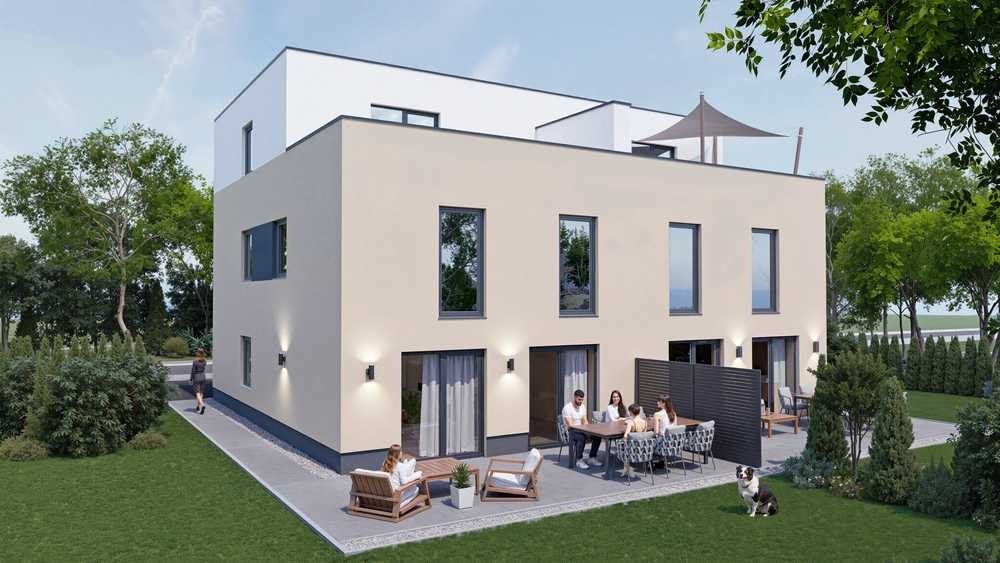 Attraktive Doppelhaushälfte Neubau in in Top-Lage von Düsseldorf-Unterbach mit drei Schlafräumen, zusätzlich Dachstudio mit Dachterrasse.