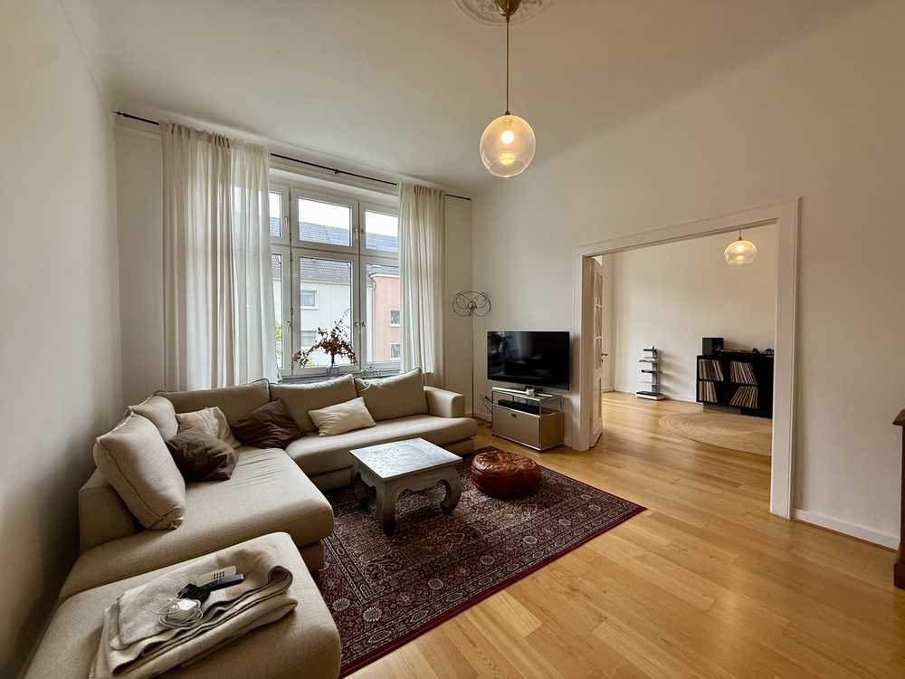 Diese durch Ihre mit großen Fensterfronten lichtdurchflutete Altbau -Jugendstil Wohnung befindet sich in der 2. Etage eines dreigeschossigen Hauses, das 1938 erbaut wurde. 2009 wurde das gesamte Objekt sehr hochwertig kernsaniert. Mit einer großzügigen Wohnfläche von 118 m² bietet die Wohnung drei Zimmer, darunter zwei Schlafzimmer, zwei Badezimmer und ein separates Gäste-WC. Eine weitere Besonderheit ist der ruhige Süd-West Balkon zum Hinterhof. Die weiße NOLTE Küche mit Granitarbeitsplatte ist im Kaufpreis enthalten.