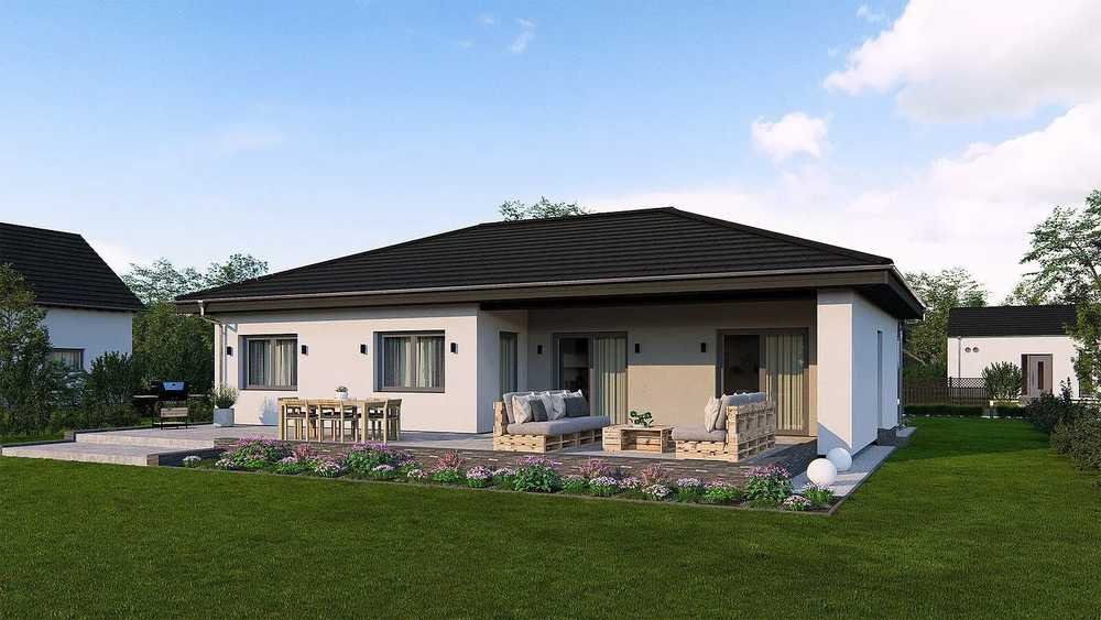 Kompakt, durchdacht und stilvoll - der Bungalow PUR 1 von OKAL bietet auf 125 m² modernes Wohnen auf einer Ebene.