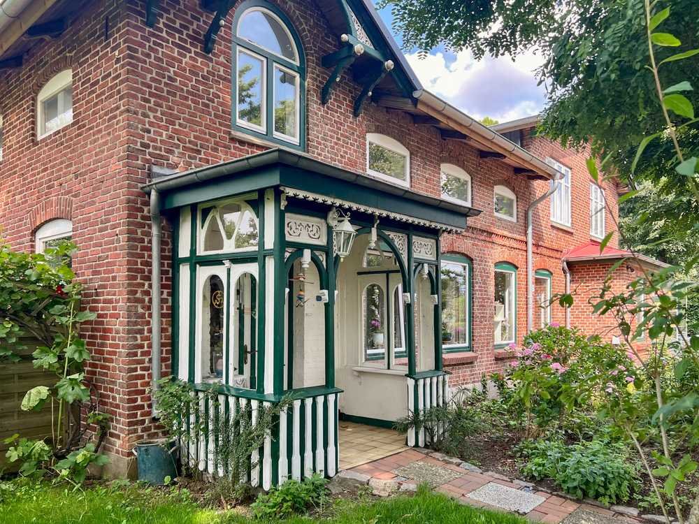 Der im historischen Holzverandastil gebaute Eingangsbereich stammt noch aus den Entstehungsjahren und ist ein absoluter Blickfang. Von hier aus gelangen Sie in die kleine Diele mit der in 2004 neu erstellten Treppe zum Dachgeschoss. Links der Diele liegt das großzügige Wohn- und Esszimmer mit Zugang zur südlich ausgerichteten Terrasse und einem schönen Blick in den Garten. Ein idealer Platz zum Frühstücken und Entspannen! Ein Kaminofen im Wohnbereich spendet an kalten Tagen wohlige Wärme.