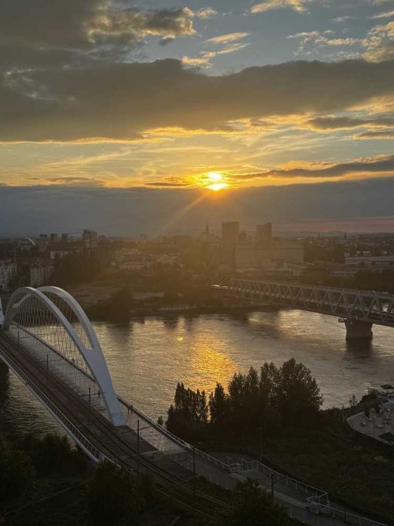 Von hier aus genießen Sie einen atemberaubenden Blick über das ehemalige Landesgartenschaugelände mit der Villa Schmidt und der Passarell, über die Rheinebene, den Schwarzwald, Straßburg samt Münster bis hin zu den Vogesen.