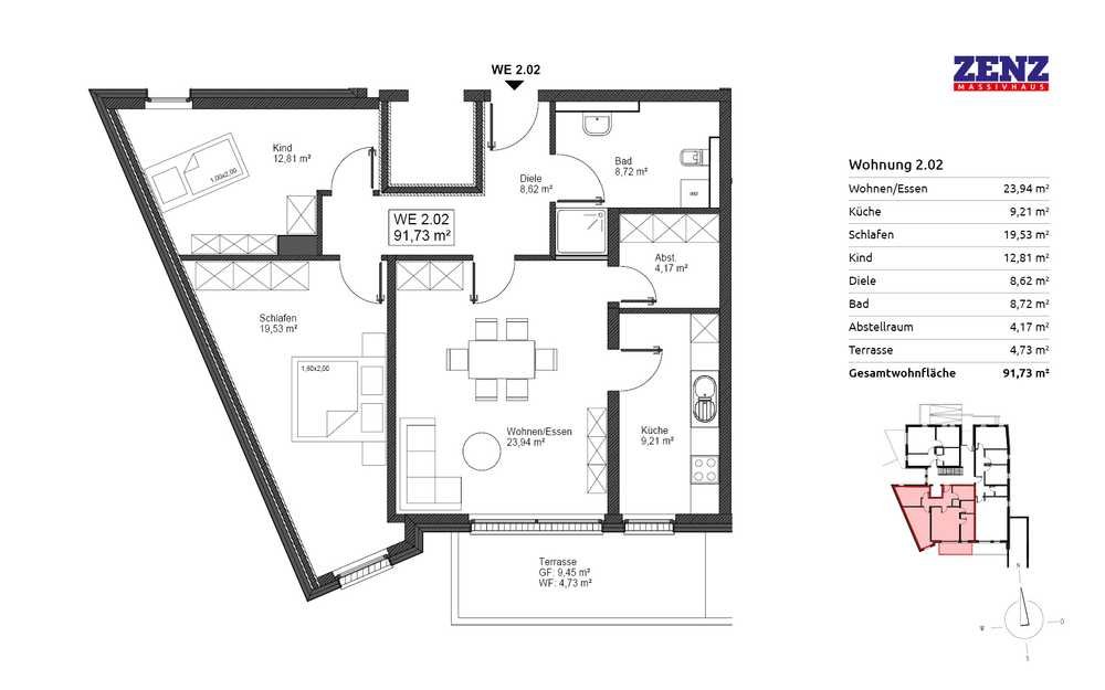 Mit einer großzügigen Wohnfläche von 91,73 m² sowie einer Terrasse mit 9,45 m² bietet sie attraktiven Wohnkomfort in zentraler Lage – ideal für Kapitalanleger, die auf langfristige Mieteinnahmen setzen.