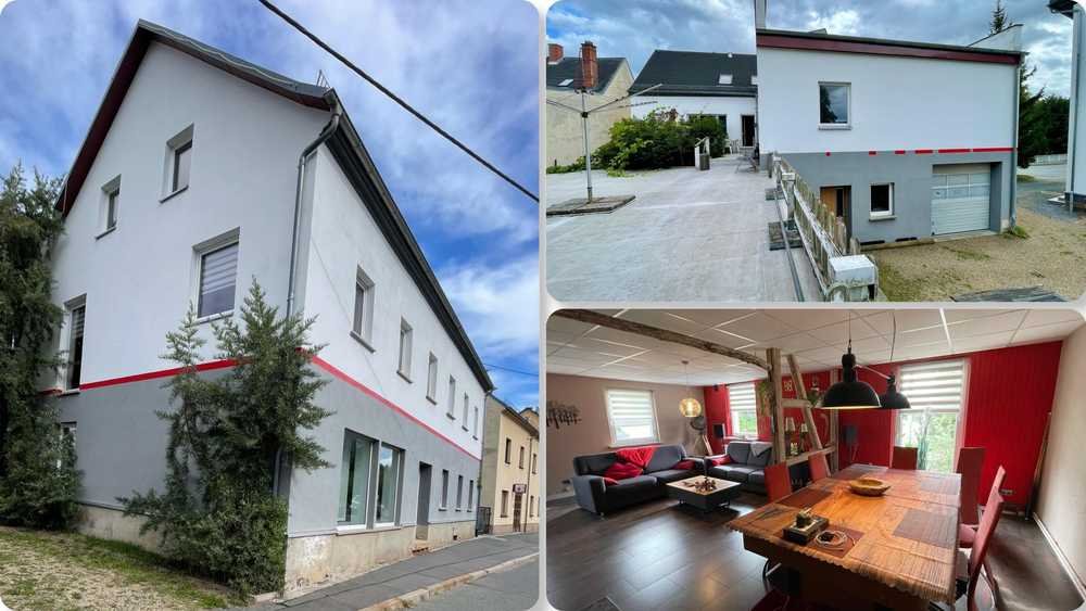 Eigentlich besteht diese Liegenschaft aus zwei Häusern, die miteinander verbunden sind und riesige Möglichkeiten bietet. So finden Sie im Erdgeschoss Garage(n), Werkstatt und einen möglichen Verkaufsraum vor. Auch ein großes helles Kinderzimmer befindet sich in den unteren Räumlichkeiten. Auch das Obergeschoss bietet Ihnen viel viel Platz. Neben einem über 40 m² großem Wohnzimmer mit Kamin stehen Ihnen neben der Küche und dem Bad drei weitere Zimmer zur Verfügung. Eines dieser Zimmer (ca. 50 m²) diente dem Eigentümer als Probezimmer für Musik. Auf der sehr großen Terrasse können Sie richtig toll entspannen