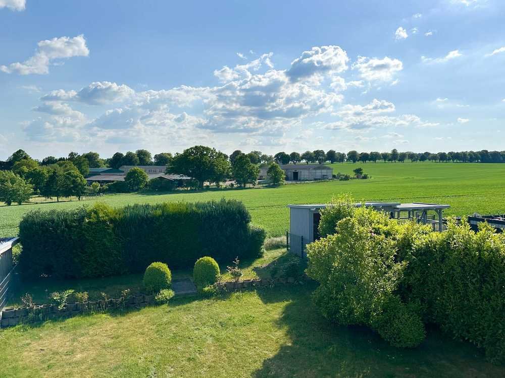 Die Raumgestaltung des Erdgeschosses zeichnet sich durch den großzügigen Wohn- und Essbereich aus. Dieser Bereich hat eine unmittelbare Anbindung an die Küche. Hausarbeiten können in dem sich der Küche anschließenden Hauswirtschaftsraum erledigt werden. Die große Diele, wo sich auch der Hauseingang befindet, verfügt über eine galerieartige Treppenanlage in das Dachgeschoss, viel Stellfläche und Zugang zum Gäste-WC. Die vom Wohnzimmer aus erreichbare Terrasse, hat eine Südwest-Ausrichtung und bietet einen wunderschönen Ausblick über die angrenzenden Wiesen und Felder.