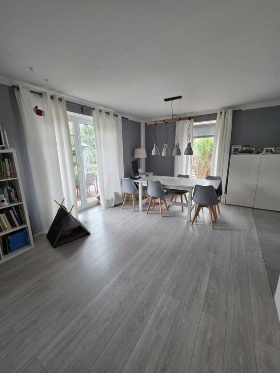 Zum Verkauf steht ein sehr gepflegtes, junges Einfamilienhaus in ruhiger, ländlicher Lage. Das im modernen Stil errichtete Haus bietet auf ca. 104 m² Wohnfläche alles, was das Herz anspruchsvoller Käufer höherschlagen lässt. Das großzügige Grundstück mit 747 m² ist liebevoll angelegt und überzeugt mit einem wunderschönen Garten. Regenwasser wird aus einem unterirdischen Erdtank genutzt um die Pflanzen zu versorgen – ideal für alle, die Wert auf Nachhaltigkeit und Komfort legen.