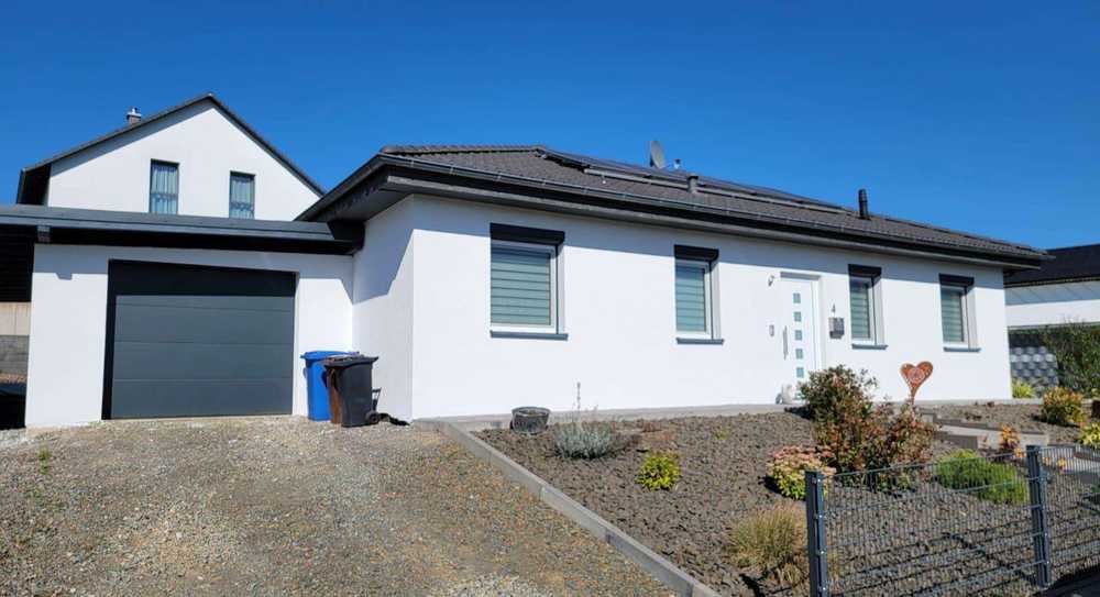 Hier bieten wir Ihnen ein toller neuwertiger Walmdach-Bungalow in einem ruhigem Wohngebiet in Toplage in Contwig/Westpfalz zum Kauf.Das Haus wurde im Jahr 2016 in Massivbauweise ohne Keller errichtet. Das dazu gehörende große Grundstück hat eine Fläche von ca. 690 qm. Die Wohnfläche vom Haus liegt bei etwa 115 qm Größe.Geheizt wird der Bungalow mit einer modernen Gasheizung aus dem Jahr 2016. Das Objekt hat einen tollen gehobenen Wohnstandard. So werden zum Beispiel die Rolläden elektrisch angetrieben und eine Fußbodenheizung sorgt für eine angenehme Raum Wärme. Eine Solaranlage befindet sich auf dem Dach und betreibt einen 400 l Warmwasserspeicher. Das komplette Haus ist durch weg gefliest. Die Decke des Hauses ist gedämmt,was man beim sehr guten Energie Kennwert erkennen kann,welcher einen Top Wert aufweist. Bei Besichtigung kann der Energieausweis eingesehen werden. Alle Innentüren vom Haus sind aus weißem Holz. Die weißen Kunststoff-Fenster sind aus Dreifach Verglasung. Eine moderne Einbauküche mit guten Elektrogeräten wird beim Kauf mit angeboten.Das tolle moderne Badezimmer wollen wir auch noch erwähnen. Neben dem Haus steht eine große Doppelgarage und ein großes Doppel Carport. Im Garten befindet sich ein wunderschönes Blockhaus mit überdachter Terrasse. Ein kleines Highlight sind auch die Fliegengitter am Haus, was lästiges Ungeziefer nicht ins Haus herein lässt .Im Grundstück befindet sich auch ein schöner Steingarten.Aufgeteilt ist das Haus wie folgt: Ein ganz tolles Wohn-Esszimmer, drei Schlafzimmer, eine Küche mit Einbauküche, ein Flur, ein modernes Badezimmer ,ein Hauswirtschaftsraum und eine große Terrasse.