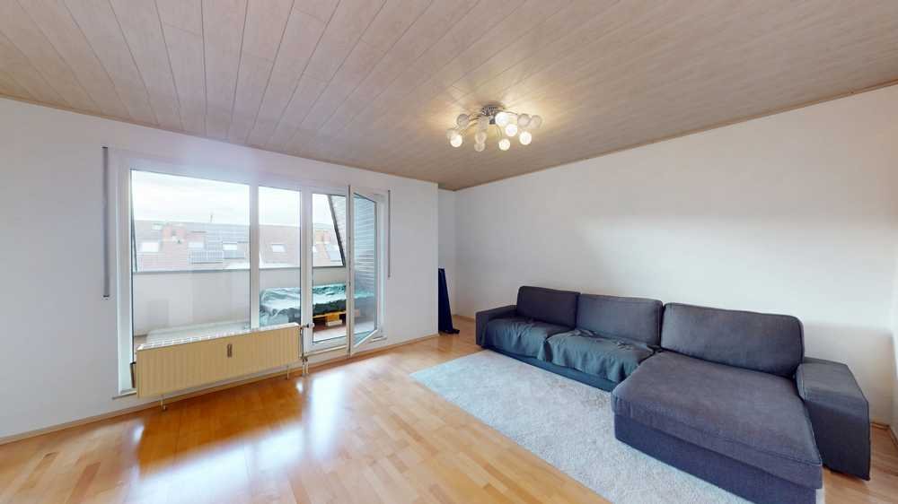 Das Herzstück der Wohnung ist der großzügige Wohnbereich mit Zugang zur überdachten Loggia.