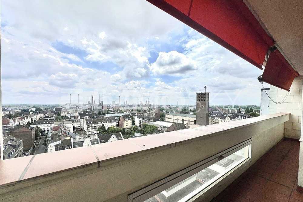 Diese gut geschnittene und lichtdurchflutete 2-Zimmer-Wohnung befindet sich im 10. Obergeschoss eines gepflegten Mehrfamilienhauses mitten im Zentrum von Leverkusen-Wiesdorf – direkt gegenüber vom beliebten Café Extrablatt.