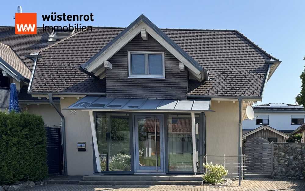 Die 2008 erbaute Doppelhaushälfte wurde ursprünglich als Bürogebäude mit Ausstellungsraum gebaut und später als Wohnhaus angepasst. Daher befindet sich im Untergeschoß das Duschbad und ein großes isoliertes Studio, welches von den Mietern derzeit als Schlafzimmer und als großen begehbaren Kleiderschrank genutzt wird. Das Erdgeschoß ist aufgeteilt in einen Gardrobenbereich und einen großen Wohn-/Essbereich mit offener Küche und einem direkten Zugang zur großen Terrasse. Über die im Wohnbereich integrierte Treppe gelangt man in das Dachgeschoß, welches in ein WC und 2 Schlafzimmer unterteilt ist. Vor dem Haus stehen Ihnen 3 PKW-Stellplätze zu Verfügung.