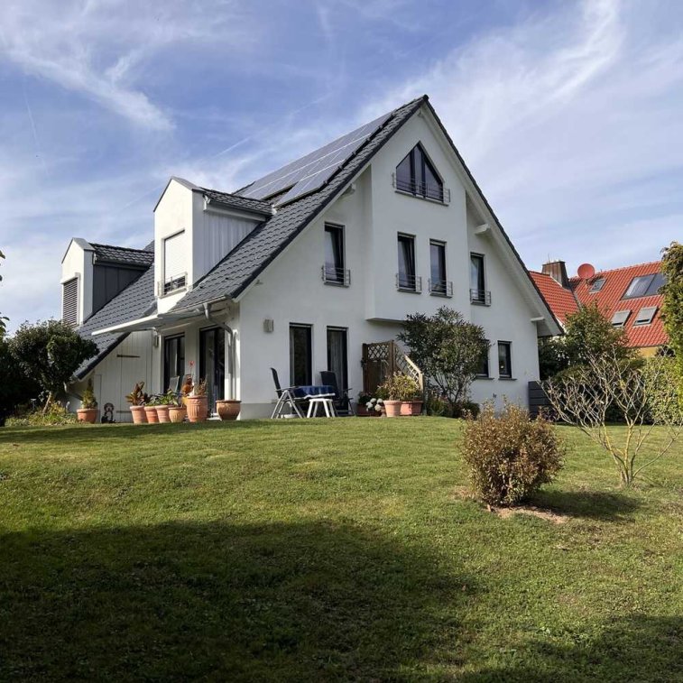 Die im Jahr 2001 erreichte Doppelhaushälfte ist teilunterkellert und verfügt im EG, DG und im Spitzboden über eine Wohnfläche von knapp 127 m². Der Grundriss ist absolut familienfreundlich mit hellen und einladenden Räumen in zeitlos moderner und ansprechender Ausführung. Insbesondere im Erdgeschoss hat man aus der Küche und dem Wohnbereich einen traumhaften Ausblick in den Garten. Dieser wiederholt sich im übergroßen Fenster im Spitzboden.