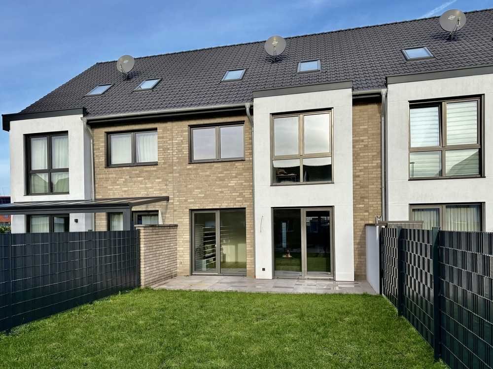 Bei dem neuwertigen, dreistöckigen Reihenhaus handelt es sich um eine attraktive Immobilie, die durch eine luxuriöse Innenausstattung besticht. Drei Badezimmer und ein separates Gäste-WC zählen neben fünf schönen Zimmern zu dem Haus. Geheizt wird das im Jahr 2023 gebaute Objekt mit einer Fußbodenheizung. Ein aktueller Bedarfsausweis ist erstellt. Erdgeschoss: Beim Betreten der Häuser eröffnet sich Ihnen ein lichtdurchfluteter und offener Wohn- und Essbereich, der Ihnen unzählige Möglichkeiten bietet, Ihren persönlichen Wohnstil zu entfalten. Von hier aus gelangen Sie direkt auf Ihre private Terrasse und in den herrlichen Garten, wo Sie gemütliche Stunden im Freien verbringen können. Ein zusätzlicher Vorteil ist der Heizungsraum und das Gäste-WC im Erdgeschoss, die Ihren Wohnkomfort weiter steigern. Obergeschoss: Die obere Etage des Reihenhauses bietet Ihnen Raum für Entspannung und Rückzug. Hier finden Sie 3 sehr geräumige Schlafzimmer, die Sie nach Ihren Wünschen gestalten können. Genießen Sie Ihr eigenes Reich und fühlen Sie sich rundum wohl. Das große Badezimmer verwöhnt Sie mit hochwertigen Sanitäranlagen und bietet Ihnen eine Oase der Erholung. Dachgeschoss: Ein absolutes Highlight des Reihenhauses ist das großzügige Dachgeschoss, das Ihnen als vielseitiges Studio dient. Nutzen Sie diesen Raum nach Ihren individuellen Bedürfnissen - ob als zusätzliches Schlafzimmer, Büro oder Hobbyraum. Hier können Sie Ihrer Kreativität freien Lauf lassen und Ihre Wohnträume verwirklichen.