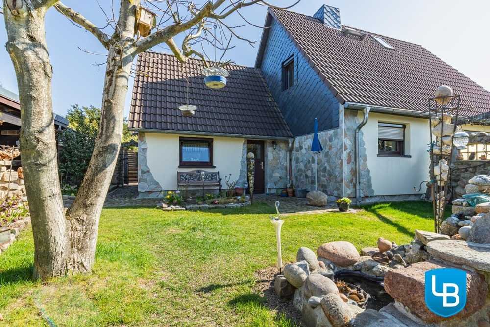 Auf dem großzügigen Grundstück von 828 m² finden Sie eine Außenanlage, die mit vielen liebevollen Details gestaltet wurde. Feldsteine und verspielte Elemente schaffen ein idyllisches Ambiente, das zu entspannten Stunden im Freien einlädt.