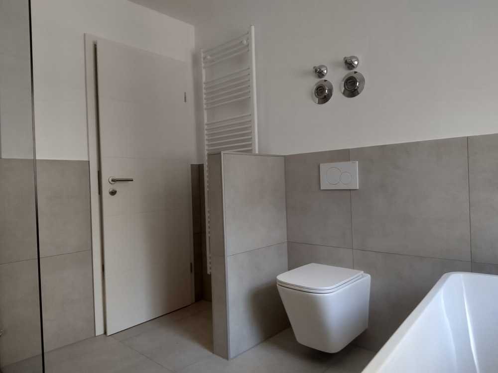 Es entstand eine schicke Stadtwohnung mit einem tollen Tageslichtbad mit bodentiefer Dusche und Badewanne. Auch der Waschmaschinenanschluss findet nun im Bad seinen Platz.