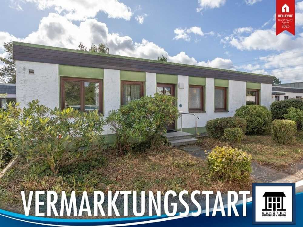 Erdgeschoss: großzügiges Wohn- und Esszimmer mit direktem Zugang zur Terrasse, Arbeitszimmer mit Gartenzugang, Elternschlafzimmer, drei Kinderzimmer, Tageslichtbad mit Badewanne, Küche, Diele mit Gäste-WC und Treppenabgang.