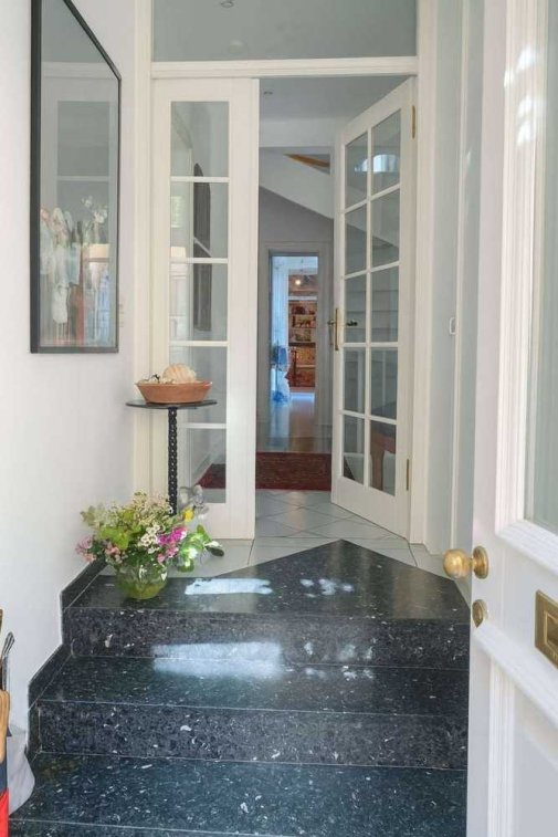 Im ersten Obergeschoss offenbart sich der repräsentative Wohnbereich des Hauses: Eine wundervolle Flügeltür verbindet Wohn- und Esszimmer und öffnet die Weite zwischen den Räumen, wodurch fließende Übergänge entstehen, die Großzügigkeit betonen und den Räumen eine besondere Ausstrahlung verleihen. Ergänzt wird diese Ebene durch ein gemütliches zweites Schlafzimmer sowie ein weiteres Duschbad.