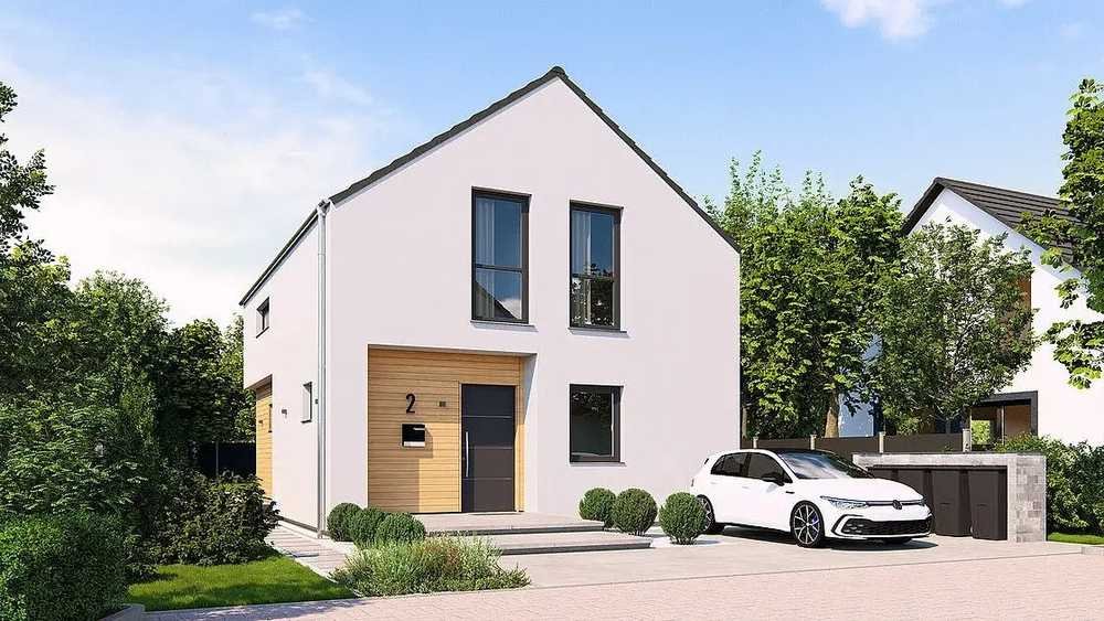Schlichte Eleganz und ein durchdachtes Raumkonzept verleihen diesem Einfamilienhaus seine besondere Ausstrahlung. Die klare Linienführung der Architektur wird von einer zweifarbigen Fassadengestaltung betont, die Tiefe und Charakter schenkt. Im Inneren setzt sich diese Klarheit fort: Das Erdgeschoss öffnet sich zu einem lichtdurchfluteten Wohn-, Ess- und Kochbereich, der fließend in den Garten übergeht - ein Ort für lebendige Begegnungen und stille Augenblicke. Hauswirtschaftsraum und Gäste-WC sind dezent abgetrennt und sorgen für praktische Funktionalität. Von der großzügigen Diele führt eine Treppe ins Dachgeschoss, wo der Raum optimal genutzt ist: Ein helles Kinderzimmer, ein Elternschlafzimmer, ein Büro und ein komfortables Bad mit Wanne, Dusche und WC schaffen ein harmonisches Wohnumfeld. Auf rund 130 m² entsteht so ein Zuhause, das beständig Freude schenkt und Generationen verbindet.