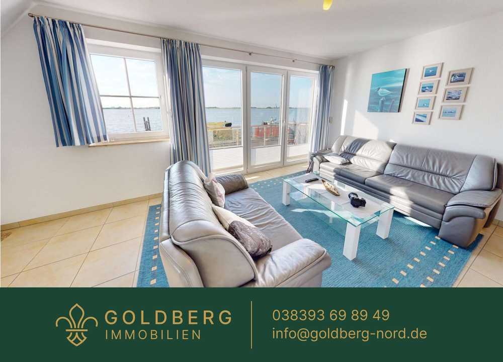 Umgeben vom Breetzer Bodden befindet sich Ihre neue Traumwohnung in einem Haus, welches allein auf einem Landvorsprung erbaut wurde. Dieser Landvorsprung wurde für den Hafenbau extra neu gestaltet und befestigt.