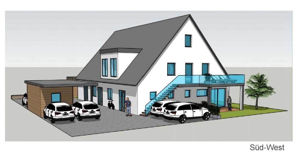 Die bereits im Bau befindliche 3-Zimmer-Wohnung verfügt über einen eigenen Zugang über eine Außentreppe und befindet sich im Dachgeschoss und Spitzboden eines 3-Familien-Wohnhaus.