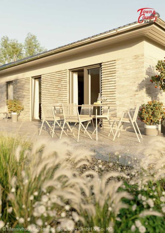 Auf rund 78 Quadratmetern finden Sie dank cleverer Planung ausreichend Platz für die ganze Familie. In den hellen, großzügig geschnittenen Zimmern wohnen Sie auf einer Ebene mit der Natur. Ob Wohnzimmer, Küche oder Schlafzimmer - überall sind Sie nur einen Schritt von Ihrem Garten entfernt.