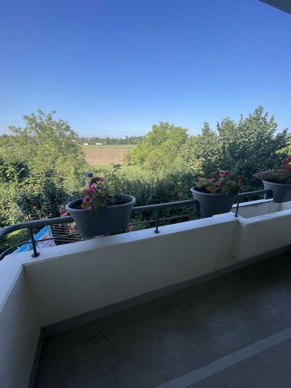 Vom Balkon hat man einen wunderschönen Blick über die Felder und Richtung Weinberge.