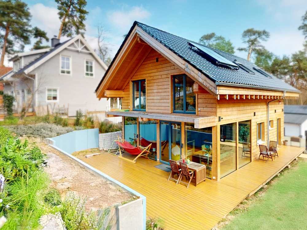 Modernes Holzhaus in Hanglage mit großer Terrasse