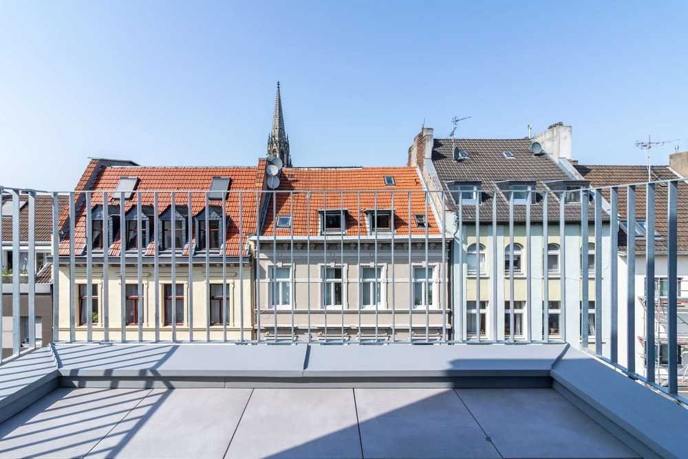 Die Dachterrasse bietet Ihnen einmalige Ausblicke über die Dächer von Köln bis hin zum Dom. Hier genießen Sie Ihren Morgenkaffee in Ruhe oder lassen bei einem Glas Wein den Tag ausklingen – Momente, die unvergesslich bleiben. Auf Wunsch kann auch eine erweiterte Dachterrassenvariante umgesetzt werden, um noch mehr Raum im Freien zu genießen.