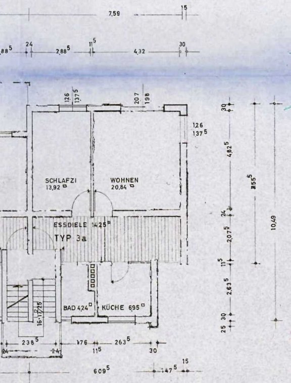 Wohnfläche: 60,2 qm - Raumhöhe 2,70 Zimmeranzahl : 2 Einzelzimmer - 1 Esszimmer/Flur - + Küche + Bad (mit Badewanne)