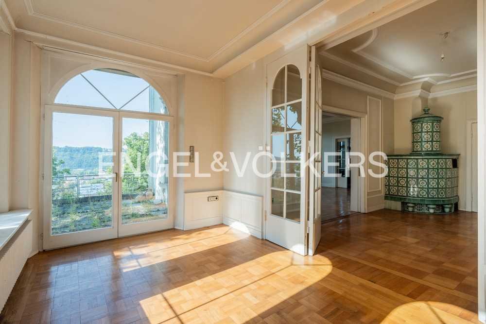 Diese prachtvolle Stadtvilla aus dem Jahr 1925 verbindet historischen Charme mit großzügigem Wohnkomfort. Auf einer Wohnfläche von ca. 445 m² und einem weitläufigen Grundstück von ca. 1.092 m² bietet diese Immobilie ein einzigartiges Wohnambiente für Liebhaber klassischer Architektur. Die Erdgeschossebene mit ihrem großzügigen Eingangsbereich ist die damalige Beletage. Diese Ebene besticht durch ihre prachtvoll erhaltenen Repräsentationsräume mit hohen Decken und eleganten Stilelementen. Zahlreiche Fenster und ein Wintergarten sorgen für lichtdurchflutete Räume. Der originale Parkettboden in Kombination mit den anderen originalen Elementen, wie der Kachelofen und der Kronleuchter sorgen für eine besondere und luxuriöse Atmosphäre. Von dem Eingangsbereich erreicht man auch die geräumige Einbauküche. Ein separater Bereich umfasst ein Schlafzimmer mit Einbauschränken sowie ein Badezimmer mit Dusche und Badewanne. Eine eindrucksvolle Holztreppe führt ins Obergeschoss, das einst als Schlaf- und Frühstücksetage diente und zudem über einen separaten Eingang zugänglich ist. Heute wird die rund 150 m² große Ebene als eigenständige Wohnung genutzt. Diese umfasst drei Schlafzimmer, ein großzügiges Wohnzimmer, eine Einbauküche mit separater Speisekammer und ein Badezimmer. Das Hauptschlafzimmer – aktuell als Wohnzimmer genutzt – führt in einen begehbaren Kleiderschrank. Das angrenzende Badezimmer verfügt über eine große, moderne Dusche, eine Toilette und ein originales Waschbecken aus dem Jahr 1925. Der südlich gelegene Balkon, zugänglich vom Wohnzimmer und Ankleidezimmer, bietet einen traumhaften Blick auf die Esslinger Innenstadt. Im ersten Dachgeschoss, das einst den Hausangestellten vorbehalten war, befinden sich zwei Schlafzimmer, ein Wohnzimmer, eine separate Einbauküche und ein Badezimmer mit Badewanne. Ein zusätzliches Zimmer liegt außerhalb der Wohneinheit. Über eine separate Treppe im Flur gelangt man in das nicht ausgebaute zweite Dachgeschoss, das reichlich Stauraum bietet. Die Doppelgarage aus dem Jahr 1983 sowie die Originalgarage bieten reichlich Platz für Fahrzeuge und Lagerung. Weitere überdachte Außenstellplätze ergänzen das Angebot. Das Untergeschoss verfügt über zwei Hobbyräume und einen historischen Gewölbekeller. Hier könnte zusätzlich ein stilvoller Wellnessbereich eingerichtet werden. Diese Stadtvilla vereint historische Eleganz und modernen Komfort und bietet auf allen Ebenen flexible Nutzungsmöglichkeiten.