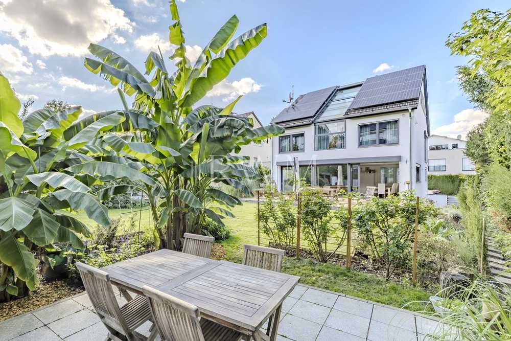 Diese Architekten-Villa auf einem 623 m² großen Grundstück ist eine exklusive Gelegenheit für modernes Wohnen und persönliche Freiräume! Die lichtdurchflutete offene Bauweise bietet drei großzügig geschnittene Etagen mit 343 m² sowie einen traumhaften Außenbereich mit großem Garten (ca. 300 m²), einer Süd-Ost-Terrasse (52 m²) und einer Einliegerwohnung (70m²).