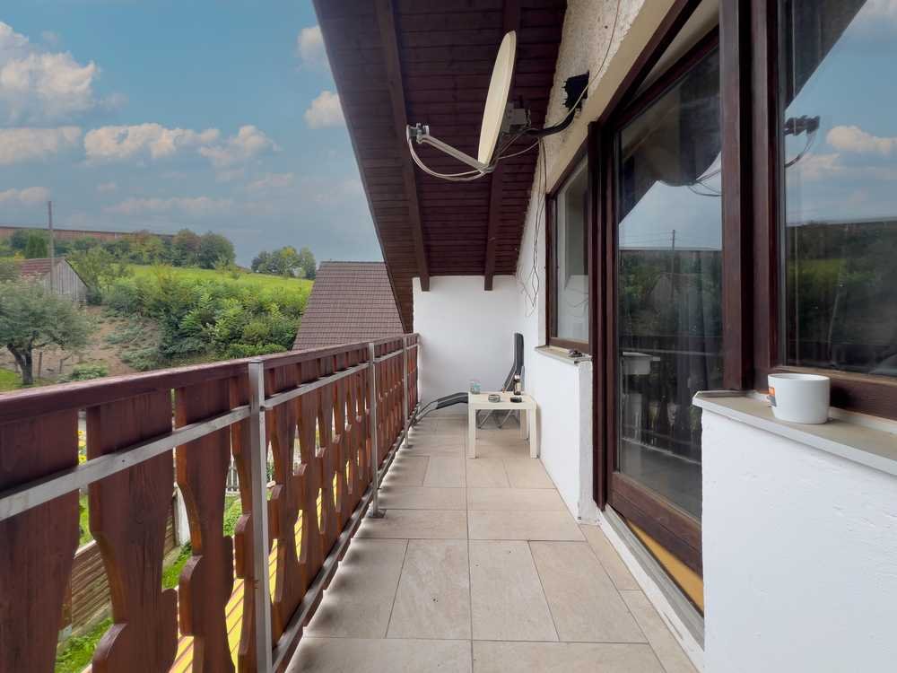 Einliegerwohnung (Dachgeschoss) – ca. 55 m², 3 Zimmer, Badezimmer und großzügiger Balkon.