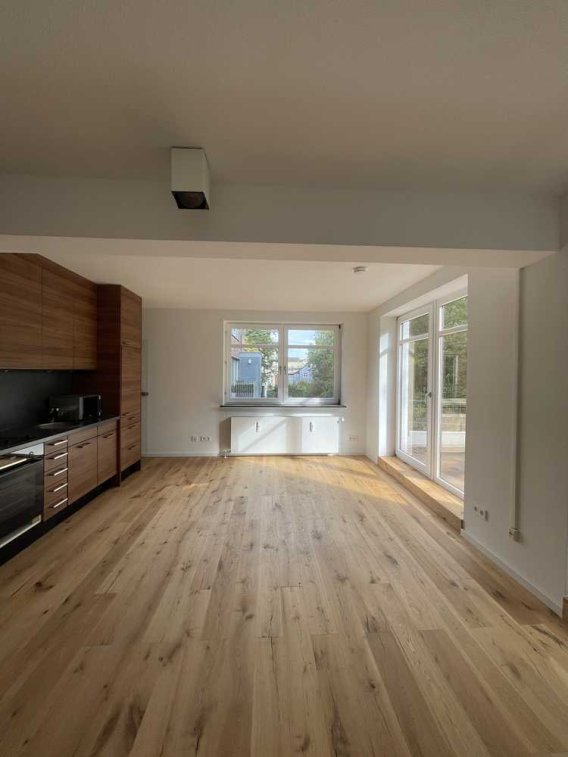 Im Zuge der Renovierung wurden hochwertige Eichen-Echtholzdielen verlegt, die der Wohnung eine warme und ansprechende Atmosphäre verleihen.