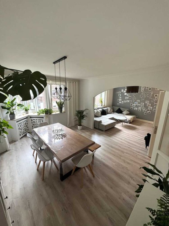 Trotz der modernen Einrichtung hat die Wohnung im Wesentlichen nichts an ihrem wunderschönen Altbaucharme verloren.
