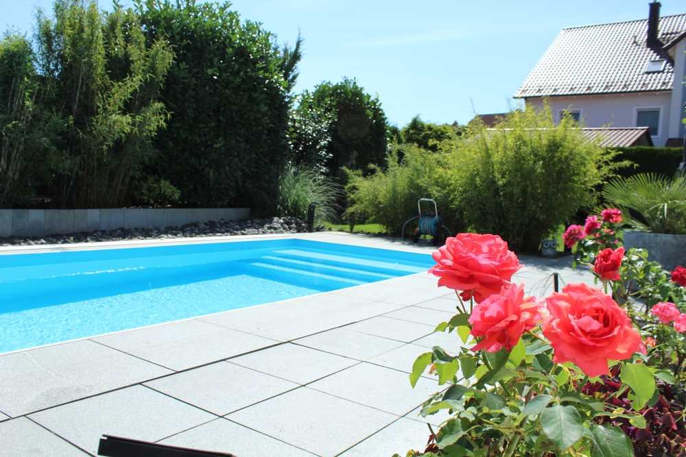 Der geschmackvoll angelegte Garten präsentiert sich als wahres Paradies und bildet das absolute Highlight der Immobilie. Großzügig gestaltet und vollständig eingefriedet, ermöglicht er ein hohes Maß an Privatsphäre und lässt Sie ungestört entspannen oder gesellige Stunden mit Familie und Freunden genießen. Im Mittelpunkt steht der beheizbare und somit ganzjährlich nutzbare Pool, welcher dem Außenbereich ein exklusives Flair verleiht. Umgeben von gepflegten Grünflächen, geschmackvoller Bepflanzung und geschützten Rückzugsorten entsteht eine Oase, die Erholung und Lebensqualität vereint.