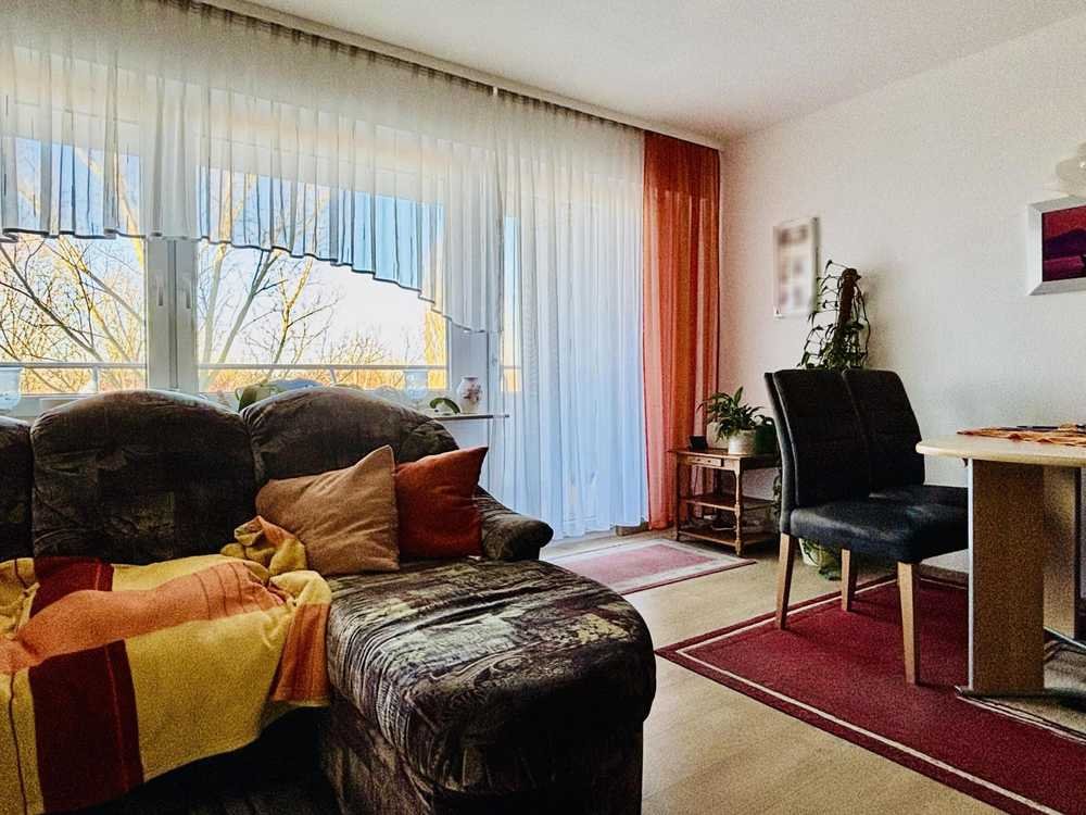 Das helle Wohnzimmer bietet direkten Zugang zum Balkon und schafft eine angenehme Wohnatmosphäre. Die separate Küche ist mit einer älteren, aber funktionalen Einbauküche ausgestattet. Das Tageslicht-Badezimmer verfügt über eine Badewanne und einen Waschmaschinenanschluss. Ergänzend dazu gibt es ein innenliegendes WC. Das Schlafzimmer bietet ausreichend Platz für individuelle Gestaltungsmöglichkeiten.