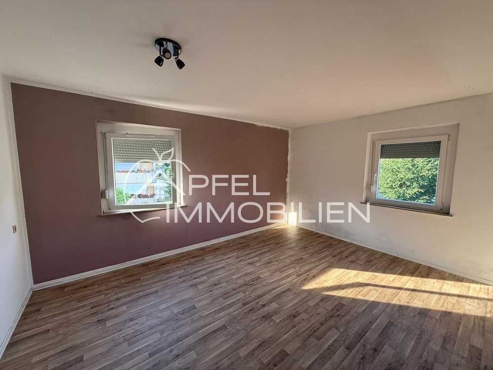Das Wohnzimmer ist großzügig gestaltet und bietet Zugang zu den weiteren Räumen sowie einem Balkon (mit neuem Geländer und Fliesenboden) Die Küche ist mit einer älteren, aber funktionalen Einbauküche (EBK) ausgestattet und kann bei Bedarf modernisiert werden.