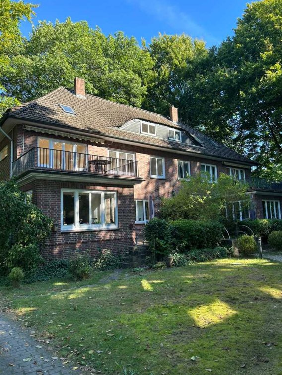 Die klassische Rotklinkervilla wurde um 1952 in der Architektur des gehobenen Lebensstils in solider Bauweise errichtet. Sie präsentiert sich mit einem hellen Eingangs- und großzügigem Treppenhausbereich und ist voll unterkellert. Im Objekt befinden sich insgesamt 5 Wohneinheiten, die als WEG verbunden sind. Das parkähnliche Grundstück ist von Rhododendren umsäumt und bietet somit ausreichende Privatsphäre.