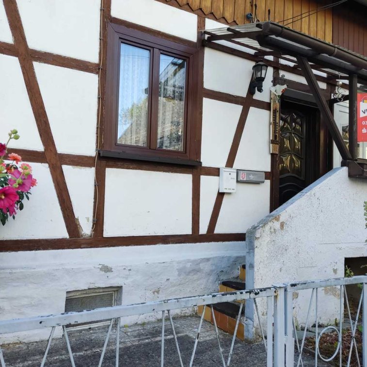 Einfamilienreihenhaus in Unterweißbach Thüringen am Rande von Schwarzatal und Leibis-Lichte-Trinkwassertalsperre. Abseits der Hauptstraße, ruhige Lage in unmittelbare Nähe des Flüsschens Lichte. Im Ort befinden sich Lebensmittelgeschäft, Landarzt und Gaststätte sowie Hotelbetrieb. Gas-Wasser-Abwasser-Elektro-Zentralantennen-Telefon-Anschluß. Alle Möbel gehören zum Angebot.