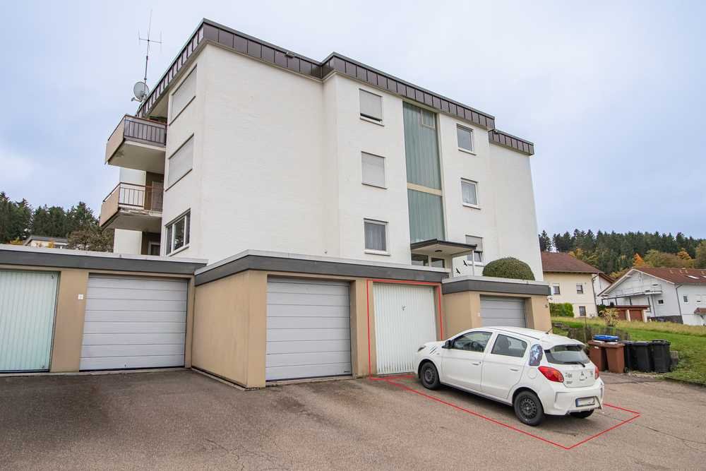 Im Untergeschoss befinden sich ein eigener Kellerraum sowie ein gemeinschaftlicher Wasch- und Trockenraum mit Waschmaschinenanschluss. Eine Einzelgarage gehört ebenfalls zur Wohnung. Vor der Garage befindet sich zusätzlich ein weiterer Stellplatz, der im Kaufumfang enthalten ist.