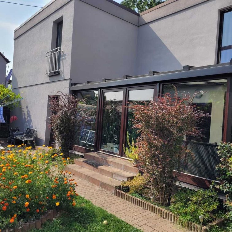 Diese exklusive Villa mit ca. 412 m² Wohnfläche und ca. 1141 m² Grundstücksfläche wurde 1960 erbaut und in den Jahren 2008-2025 modernisiert. Sie bietet 12 Zimmer, verteilt auf 2 Etagen, und verfügt über 3 Badezimmer sowie ein Gäste-WC. Die gehobene Innenausstattung und die Fußbodenheizung sorgen für höchsten Wohnkomfort. Eine Garage, ein Carport und 4 Stellplätze sind vorhanden. Die Barrierefreiheit ist gegeben. Die Villa ist ab dem 01.01.2026 bezugsfrei und eignet sich hervorragend für anspruchsvolle Bewohner, die Wert auf Stil und Raum legen. Extras: Fußbodenheizung im kompletten Haus, Solaranlage mit Warmwasserunterstützung (18 kWp), neuwertige Sauna, Kamin im Wohnzimmer (OG), Wintergarten mit Kamin, elektrische Rollläden, eigene Einfahrt, im OG ein Bereich als Studentenwohnung abtrennbar mit eigenem Zugang, beide Wohnungen sind komplett getrennt (eigene Eingänge, Heizungen, Gärten), Einbauküche im OG vorhanden.